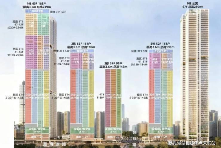 项目容积率7.59,限高250米,规划5栋超高层住宅,采用全玻璃幕墙设计,实用率高达92%以上,主力户型200㎡以上大平层。