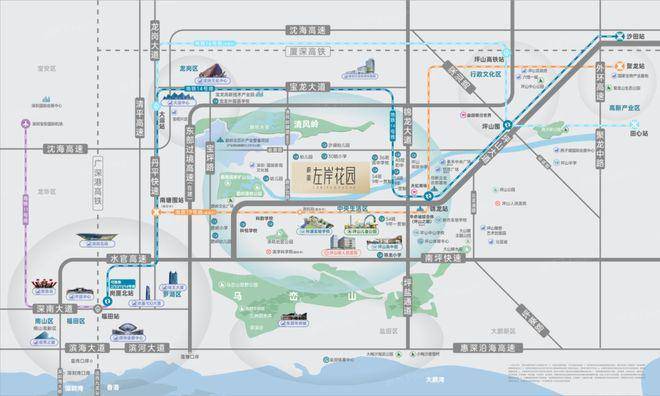 地铁19号线(规划中):坪山首条区内地铁线,项目临近14/19号线换乘站锦龙站,南塘围站。
