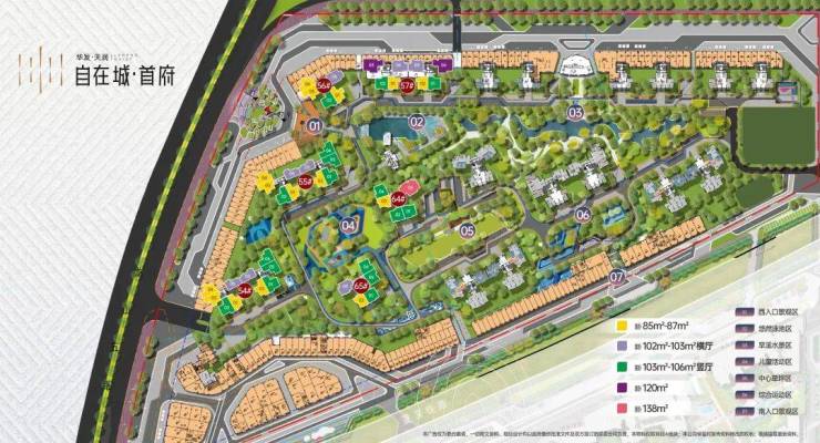 华发天润自在城,总占地面积约42万㎡,总建筑面积约163万㎡,整个楼盘分为四期开发,目前一期与二期已经交付使用。目前在售最新的一期是第三期,A地块。本地块建筑面积52万㎡,总户数3374户,其中54栋55栋56栋为33层的小高层住宅组成,54栋55栋为两梯5户。