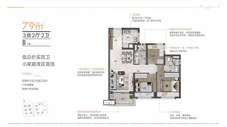 78㎡三房:实用率超95%,总价164万起(低门槛岛居选择)
