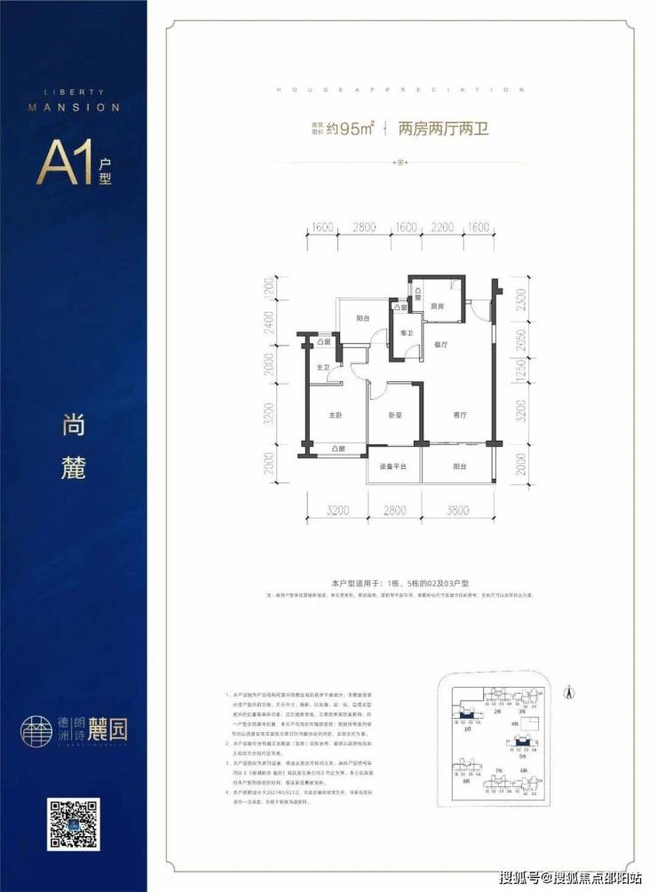 97㎡三房两厅两卫:拥有6.6米面宽大阳台,区域稀缺,双龙抱珠,双卫舒居