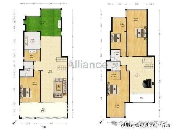户型特点:AC区别墅面积是225平中间位和269平端户别墅组成,上下四层,套内使用面积约600~700平,客厅开间6~6.5米,中间位别墅前后花园约70平,端户别墅三面花园约120平方,有的会带50平天台花园。