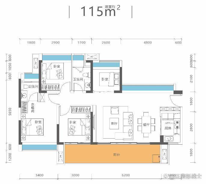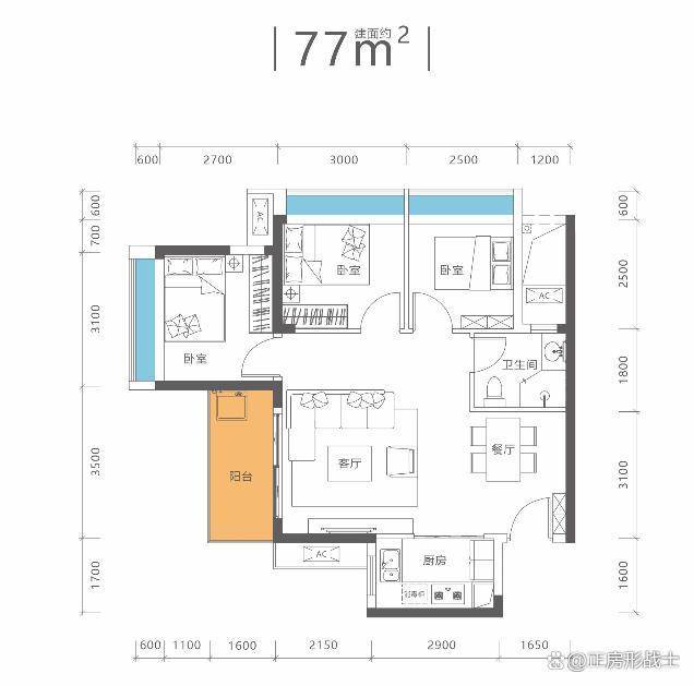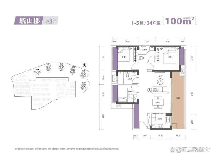 100平3房2卫,