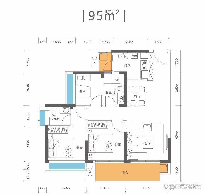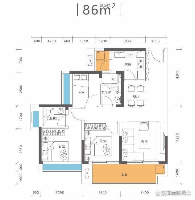 96平3房2厅2卫,