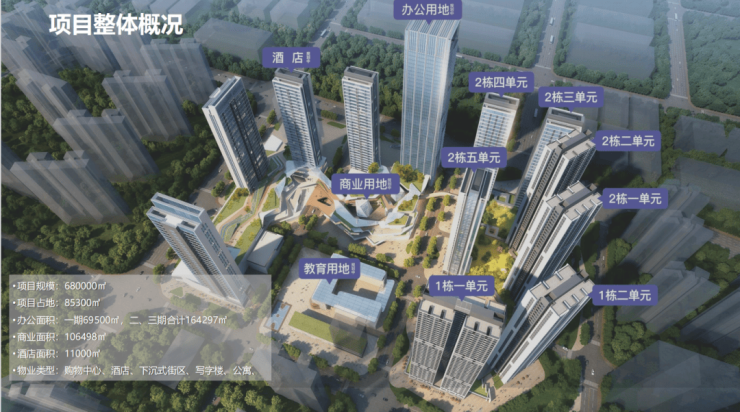 京基御景荟都分三期开发,一期是由4栋总层42-44层的公寓和3栋办公组成,一期建面30万㎡,二期三期是由学校,酒店,办公,公寓组成。目前在售一期产品