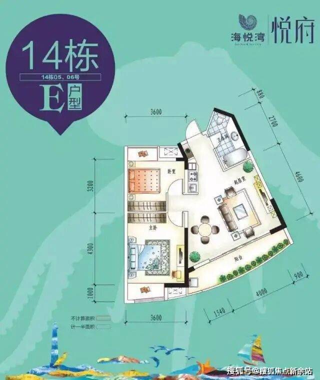 建筑面积:F1:约61.66㎡ F2:约52~58㎡,近南北向通透布局,避风采光俱佳,大阳台休闲景观,仅计一半面积,滨海度假公寓,舒适悦享,尽揽无上风景