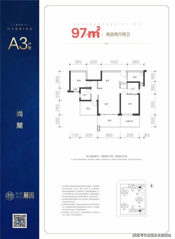97㎡三房两厅两卫:拥有6.6米面宽大阳台,区域稀缺,双龙抱珠,双卫舒居
