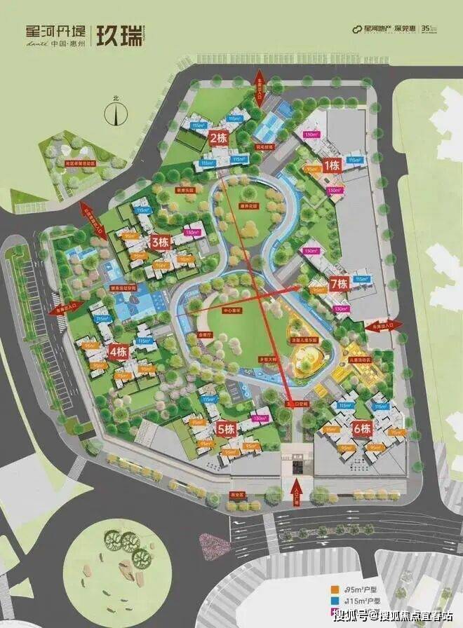 在售面积段主要有3个,95-98平3房2厅2卫,115-118平4房2厅2卫,130平4房2厅2卫这几个面积段,每一栋面积段基本都是差不多的,但是户型又有所差异。除了7栋楼王为层高21层外,其他栋都是总层高为33层的高层。