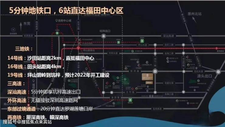 4、【三高】:深圳高速坑梓高速出口首站,外环高速无缝接驳深圳高速路网,东部过境20分钟直达罗湖莲塘口岸。