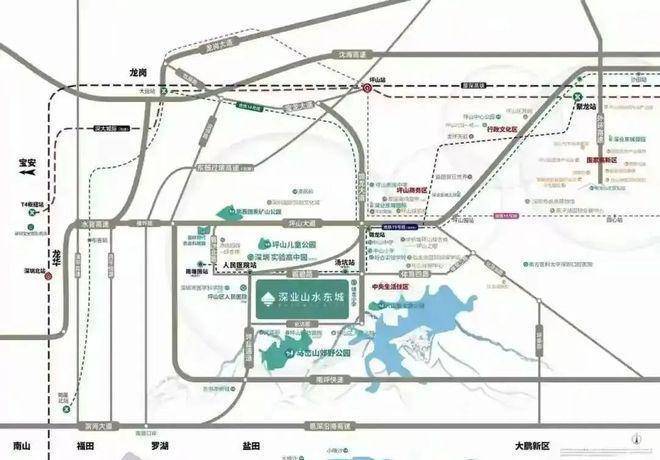 深业山水东城,位于坪山区碧岭街道锦龙大道和振碧路交汇处西南角,从板块来说可以说是属于锦龙片区,属于比较南端的区域,南侧背靠马峦山脉,东侧邻近大山陂水库,西侧毗邻深实验学校高中园,还有坪山人民医院新院区。