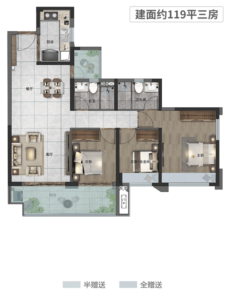 同时,户型设计上,3栋三梯四户设计、仅有建面119/143㎡两种大面积,也奠定了它的宜居度。