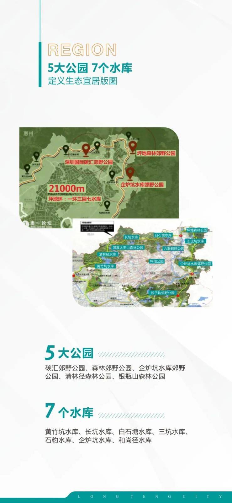 世界级2.5产业创智园区、国际化低碳科技示范城区,梅龙湖千亿智能产业新城,双新城在侧,利好发展无线。坪地碳汇公园、坪地森林公园、坪地企炉坑水库郊野公园、松子坑郊野公园四大公园,黄竹坑水库、长坑水库、白石塘水库、三坑水库、石豹水库、企炉坑水库、和尚径水库七大生态水库,以及清林径森林公园及银瓶山森林公园天然氧吧环绕。打造新宜居生态典范。