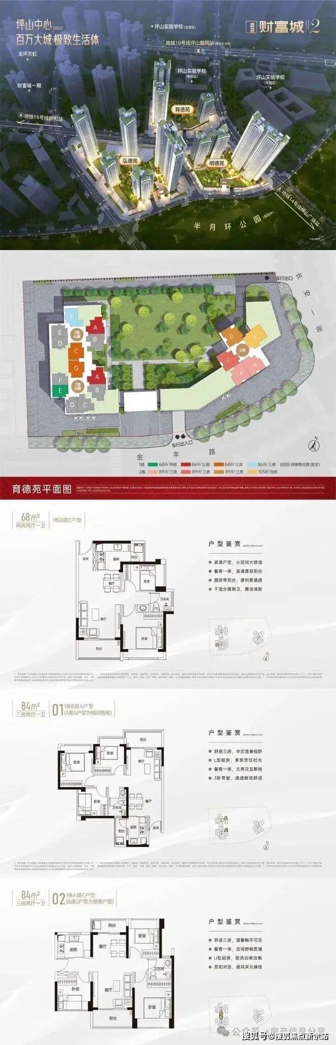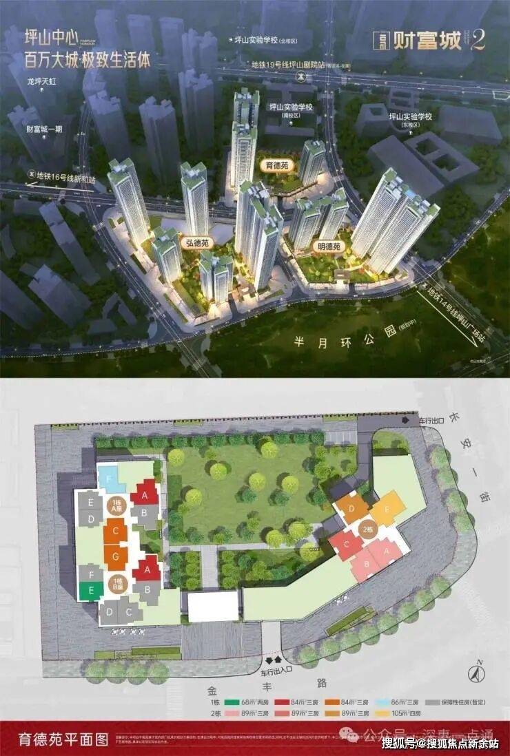 坪山中心区,财富城2期育德苑计划将在2025年在9月底取证入市,本次会首推1栋B座,面积有68m²的2房2厅1卫,84m²的3房2厅1卫户型,共110套房源,其中68m²的2房户型整个小区仅有35套!据目前爆出的价格,折后均价2.6万/m²,折后单价2.5-2.65万/m²,2房总价170万起!3房总价210万起,合同约定在2026年11月份简装交房。