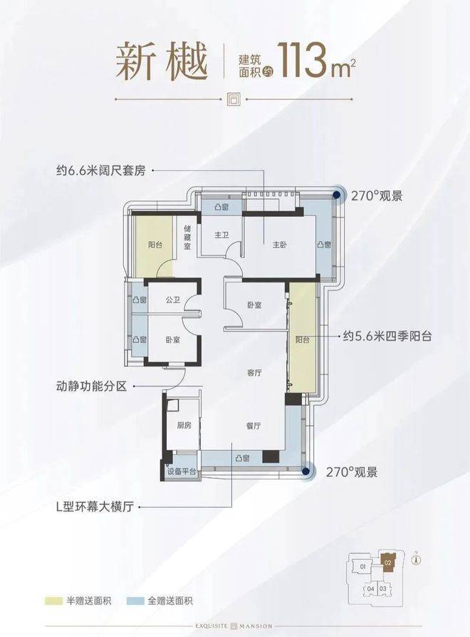 同乐公馆目前91-113㎡户型已经出炉,123㎡户型暂未公布,其中113㎡户型是个亮点,客厅房间基本都是270°转角飘窗采光,使用率高达94%。