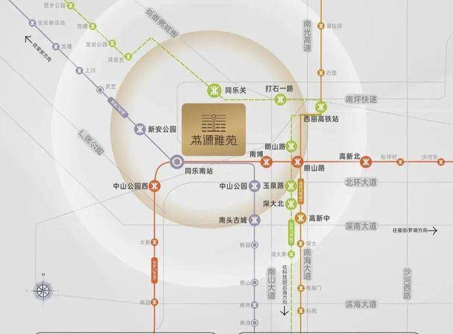 教育配套:家门口一站式优质教育,目送式书香学府小学&初中:教科院同乐实验学校(直线距离约100m),南山首个教科院系实验学校&九年一贯制学校;