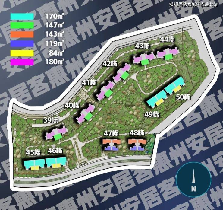 目前项目在售五期高层住宅,已经推出39栋、45栋、47栋、48栋建面约84-180㎡产品,总可售套数358套。