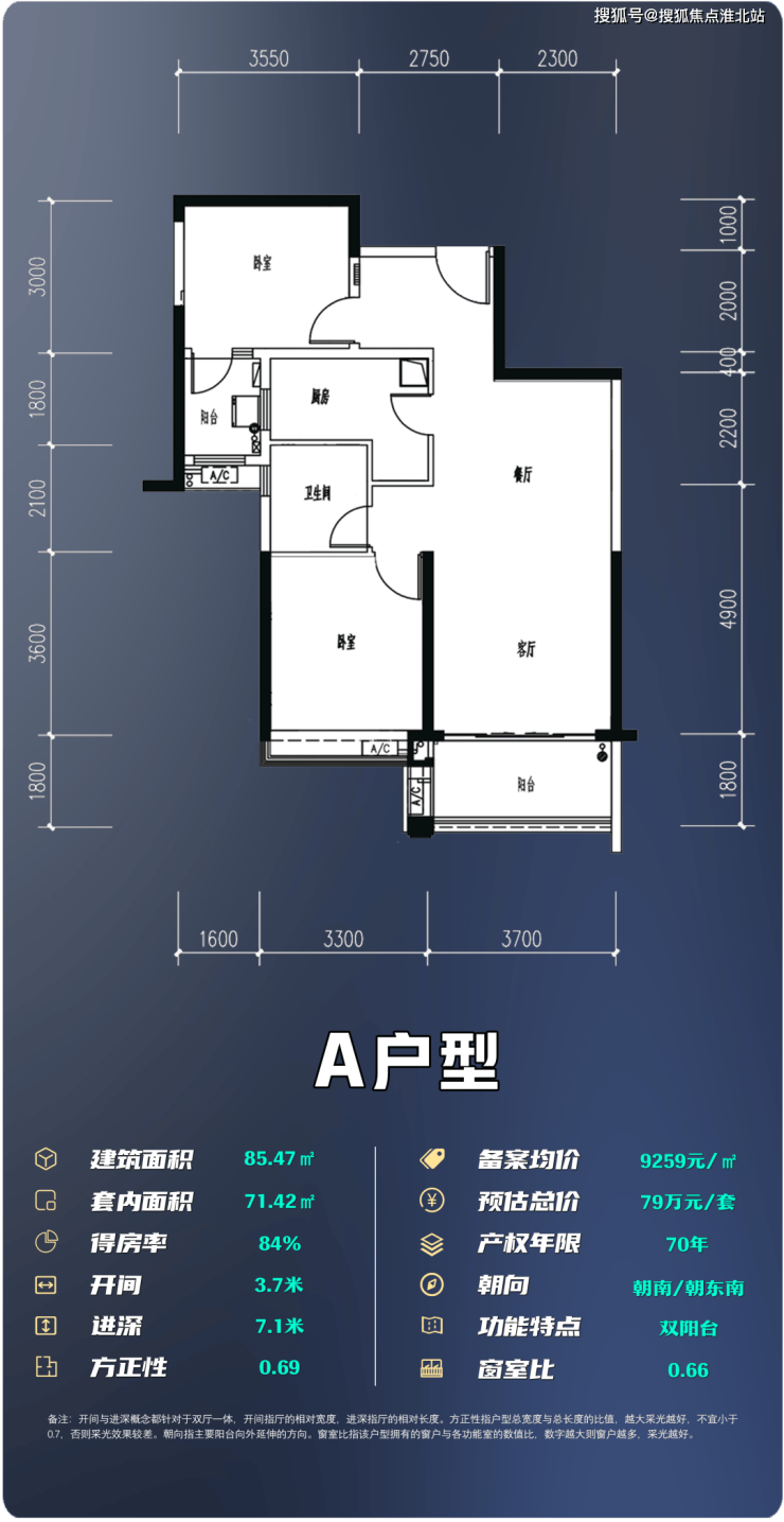 综合双阳台特点与长进深格局,净值性价比还算优良。