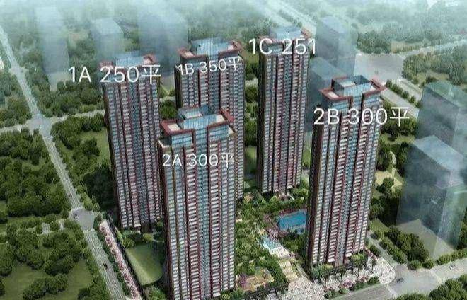 • 不同楼栋户型示例:2A、2B栋01/02户型约300㎡,为4+1房2厅5卫,东南向;1B栋01/02户型约350㎡,为5+1房2厅6卫 ,是项目的至尊楼王。