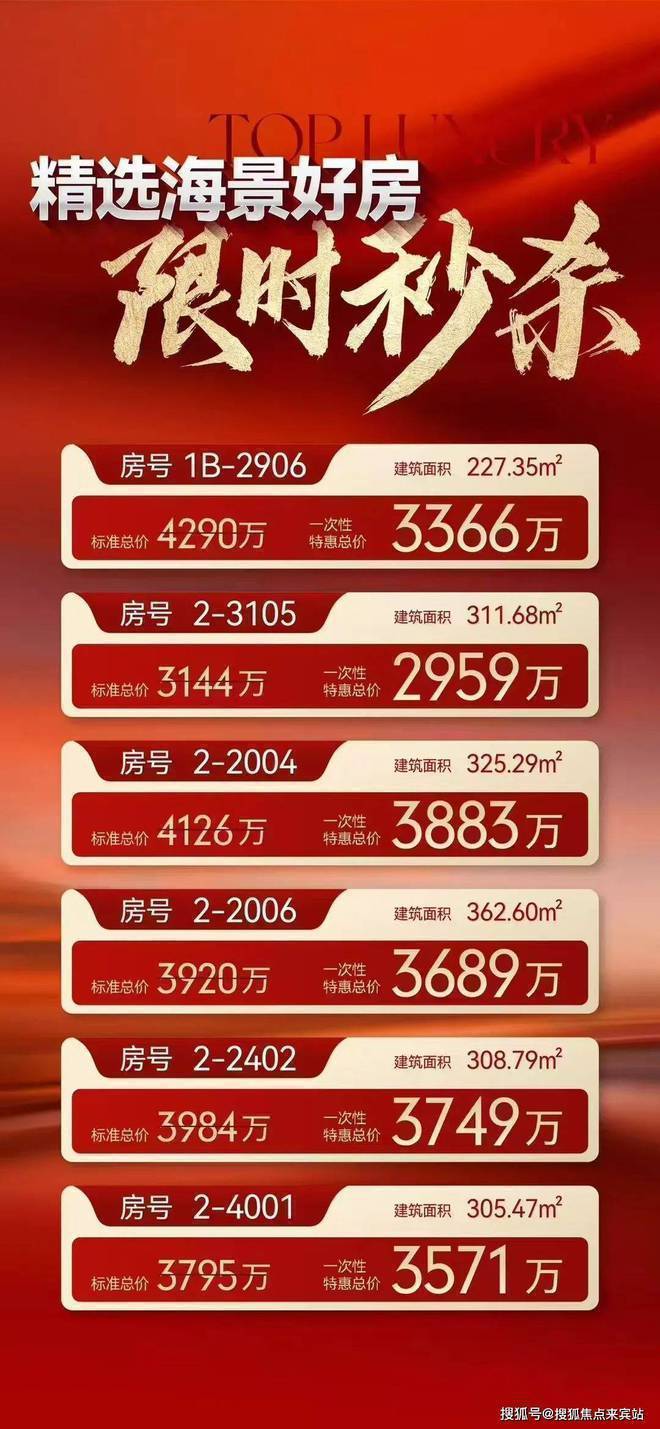 降价情况:华侨城新玺为加速去化存量房源,推出了 7 折优惠活动,折后单价 7.6 万 /㎡起。例如 370㎡户型原价 5100 万,现特价 3100 万,230㎡户型折后单价 7.6 万 /㎡起。项目整体均价约 17 万 /㎡,产品总价约 3000 万至 2.3 亿。