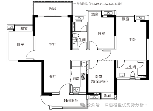 建面约140㎡四房两厅两卫