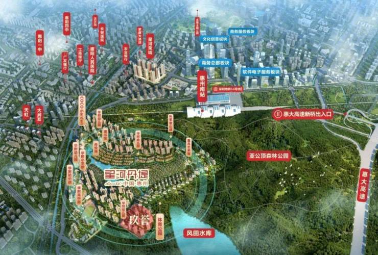惠州星河丹堤在交通方面,项目距离厦深高铁惠州南站约1.5公里的距离,随着厦深高铁全线通车,直达深圳北站,直抵福田CBD,