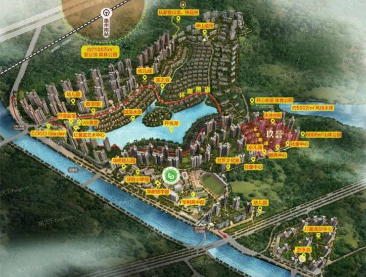 商圈方面:惠州星河丹堤于外享惠州南站的配套设施规划,于内引进华润万家、中航健身会已醇熟运营,项目门前的COCO购物 目前建成招商中;