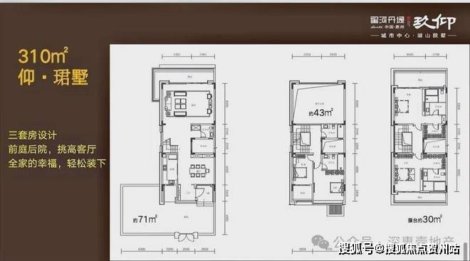 310平临湖一排别墅,使用面积约840-900平,买三层享五层,地下室全采光设计