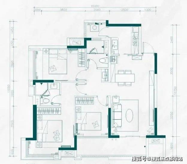 F户型:145-150㎡五房两厅两卫