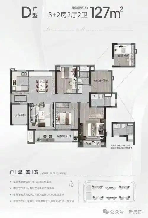 127㎡五房:南北对流设计,魔术空间可变书房,三代同堂首选。