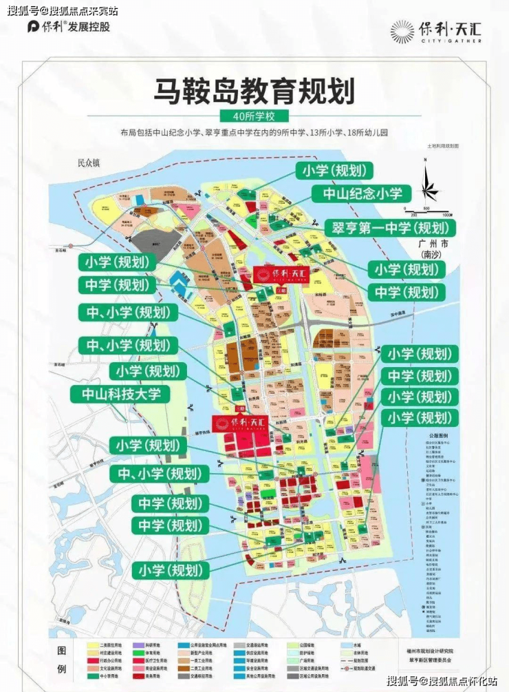 规划 40 所学校,其中小学 13 所,中学 9 所,幼儿园 18 所,提供从幼儿园到大学的全龄教育资源;除了基础教育 外,中山科技大学新校拟选址翠亨新区,投入百亿元招生 10000 人左右,拟在 2025 年建成新型研究型大学。