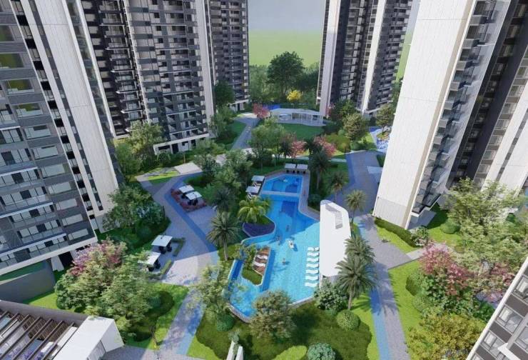 近5.4万㎡城市示范园林,打造生态呼吸型社区。园林一环、一界面、五组团、15大园林场景布局,层层叠进,一步一景。约240m超尺度围合式大园林,涵盖萌宠乐园、约500㎡双泳池、约1KM健康跑道等全能生活场景。