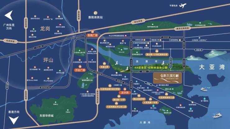 弘坤·九溪红树花园位于惠州市大亚湾区,地理位置和自然环境十分优越,同时毗邻深圳,享受深惠同城的发展红利、大亚湾片区沿海旅游度假规划及发展潜力。
