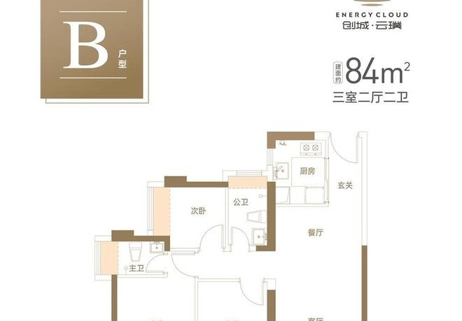 适配场景:三口之家刚需自住,或需预留书房空间的年轻家庭。