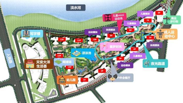 ※ 休闲配套:项目周边有天虹商场、好宜多商场、万联广场等,还有三大公园环绕,分别是半岛公园、市政广场、人民公园以及淡水河沿岸的滨河休闲带。