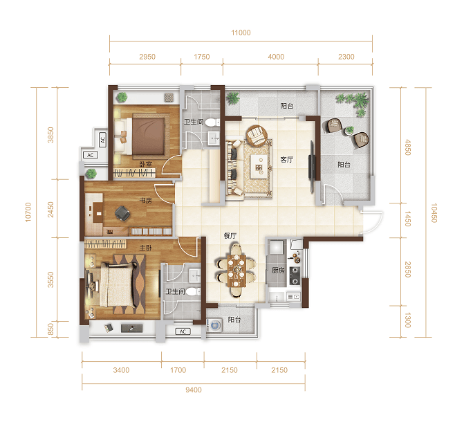 B2户型:110㎡三房两厅两卫