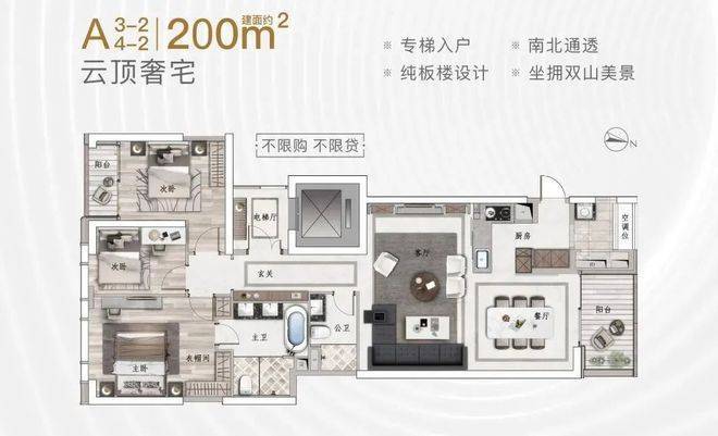 岁宝壹品不同于一般公寓整层满铺户型,采用多单元式的铺展,于保障私密之外,拓宽生活边界。项目充分考虑南北对流、通风采光、景观面等因素的户型设计,根据各区不同场景打造多元纯居住户型,满足不同业主的不同生活需求,保障最舒适的品质生活。