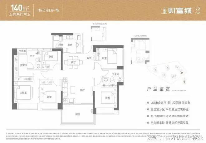 户型设计:主推75-140㎡三至五房,涵盖全周期家庭需求,其中89㎡三房得房率超96%,140㎡五房采用南北通透双套房设计,满足多孩家庭需求。