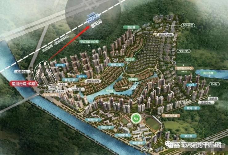 星河丹堤属于惠阳高铁站附近的热盘,距离惠阳高铁站约1.5公里,位于惠阳淡水老城区以及大亚湾西区的接壤位置,项目总占地约150万平,总建筑面积约260万平,项目整体由独栋,双拼,联排,叠院,洋房以及高层住宅组成!